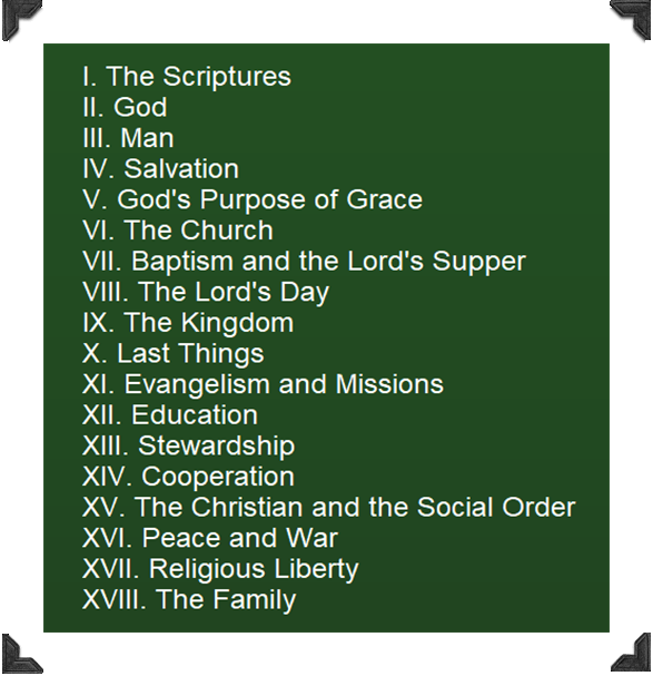 Our beliefs coincide with the Baptist Faith and Message. Below are the articles in those beliefs.
